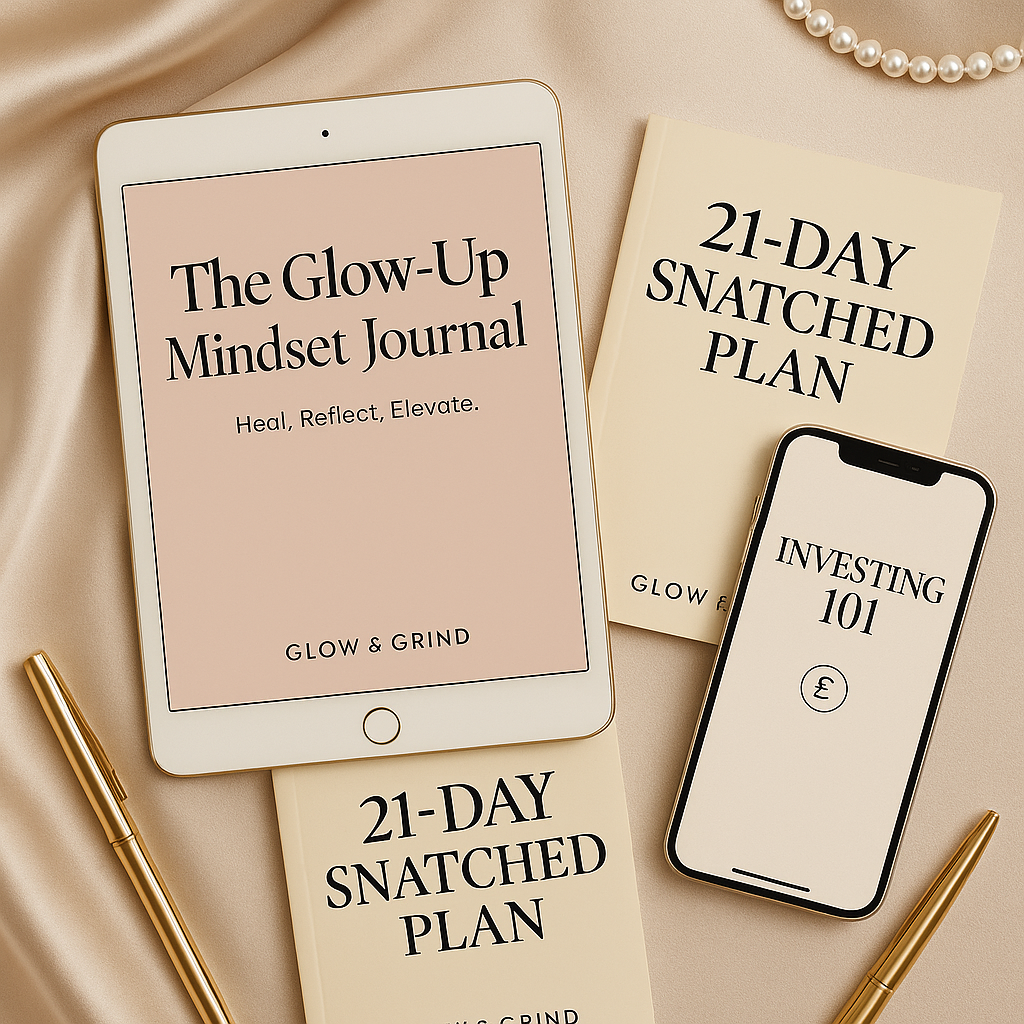 The Glow-Up Starter Kit is your all-in-one digital transformation pack designed to help you look better, feel stronger, and grow your money with purpose.